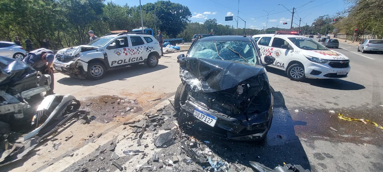 Cinco pessoas ficaram feridas em um grave acidente na manhã deste sábado (30), na Avenida Ruy Rodrigues, em Campinas. As vítimas são quatro policiais militares e um suspeito de furto. A colisão envolveu duas viaturas da Polícia Militar e um carro furtado.