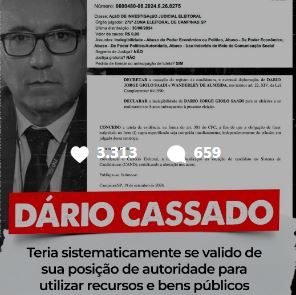 “Você já viu esse filme. O Dário dispara nas pesquisas e a oposição tenta melar o jogo. O PT entrou na Justiça para tirar o careca da disputa por causa de três posts nas redes sociais. Mas Campinas não vai deixar”, diz vídeo que circula nos canais de Dário e que estão sendo respostados de forma estratégica por seus apoiadores.