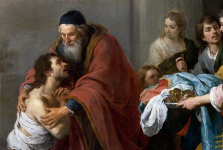 Nesse sentido, Jesus narrou-lhes a parábola do filho pródigo, também conhecida como a do pai misericordioso, que consta do Evangelho de São Lucas, 15,11-32: “Um homem tinha dois filhos. O mais novo disse ao pai que lhe desse sua parte da herança. O pai o atendeu. Poucos dias depois juntou o que lhe coube e partiu para lugar distante. Lá esbanjou tudo por vida desenfreada.” […] Então caiu em si e disse: Vou voltar para o meu pai e falar-lhe: “Pai, pequei contra Deus e contra ti e não mereço ser chamado de seu filho.” Decidiu retornar ao pai. […] Ainda estava longe, mas o pai o avistou e foi tomado de compaixão. Foi ao seu encontro, abraçou-o e o cobriu de beijos, […] e começou uma grande festa.