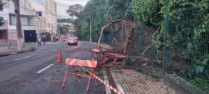Parte do alambrado do Bosque ficou destruída. Os galhos já foram retirados da via, que segue aberta ao trânsito, com apenas uma faixa interditada pela Emdec. De acordo com a Prefeitura, a Bosque abrirá nesta quarta-feira (8).