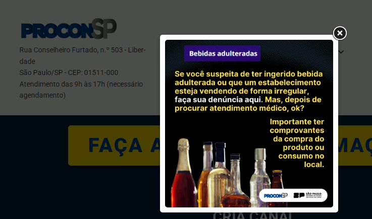 Os consumidores que identificarem situações de bebidas suspeitas de adulteração, seja na compra em mercados ou ao consumir no local, podem acessar o site www.procon.sp.gov.br e utilizar um atalho para formalizar uma denúncia.