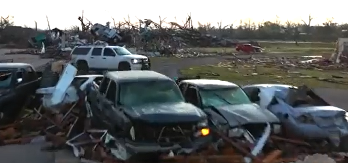 O Serviço Nacional de Meteorologia em Jackson, Mississippi informou que o tornado permaneceu no solo por cerca de uma hora e abriu um caminho de destruição de cerca de 274 km. Pelo menos 12 das mortes ocorreram em Rolling Fork, uma cidade de cerca de 1.900 habitantes no oeste do Mississippi.