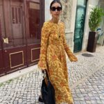Maxi vestidos e saias fluidas – Com tecidos leves e estampas naturais.