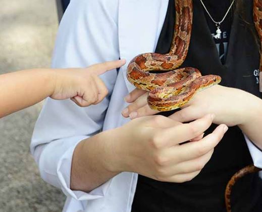 Profissionais de veterinária, biologia e outros ficam à disposição dos visitantes com os animais vivos, para que sejam tocados, e explicam a importância da preservação da fauna e da flora e do respeito ao meio ambiente.