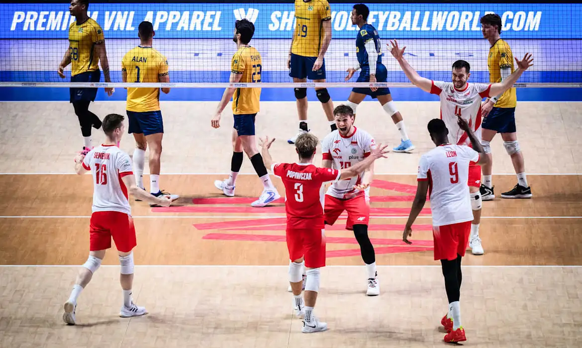 A Seleção Brasileira de Vôlei Masculino foi derrotada pela Polônia por 3 sets a 0 (26×28, 19×25 e 21×25) na manhã deste sábado (2) na semifinal da Liga das Nações em Ningbo, na China.