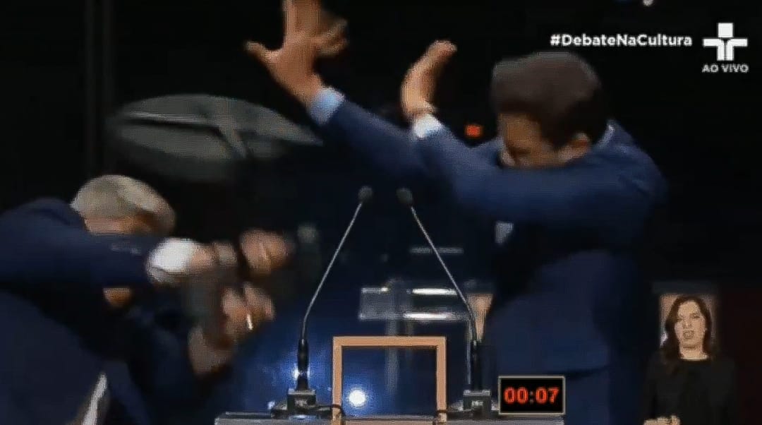 Durante o debate na noite de ontem na TV Cultura, após uma série de acusações feitas por Marçal contra a reputação de Datena, o candidato do PSDB jogou uma cadeira no candidato do PRTB.