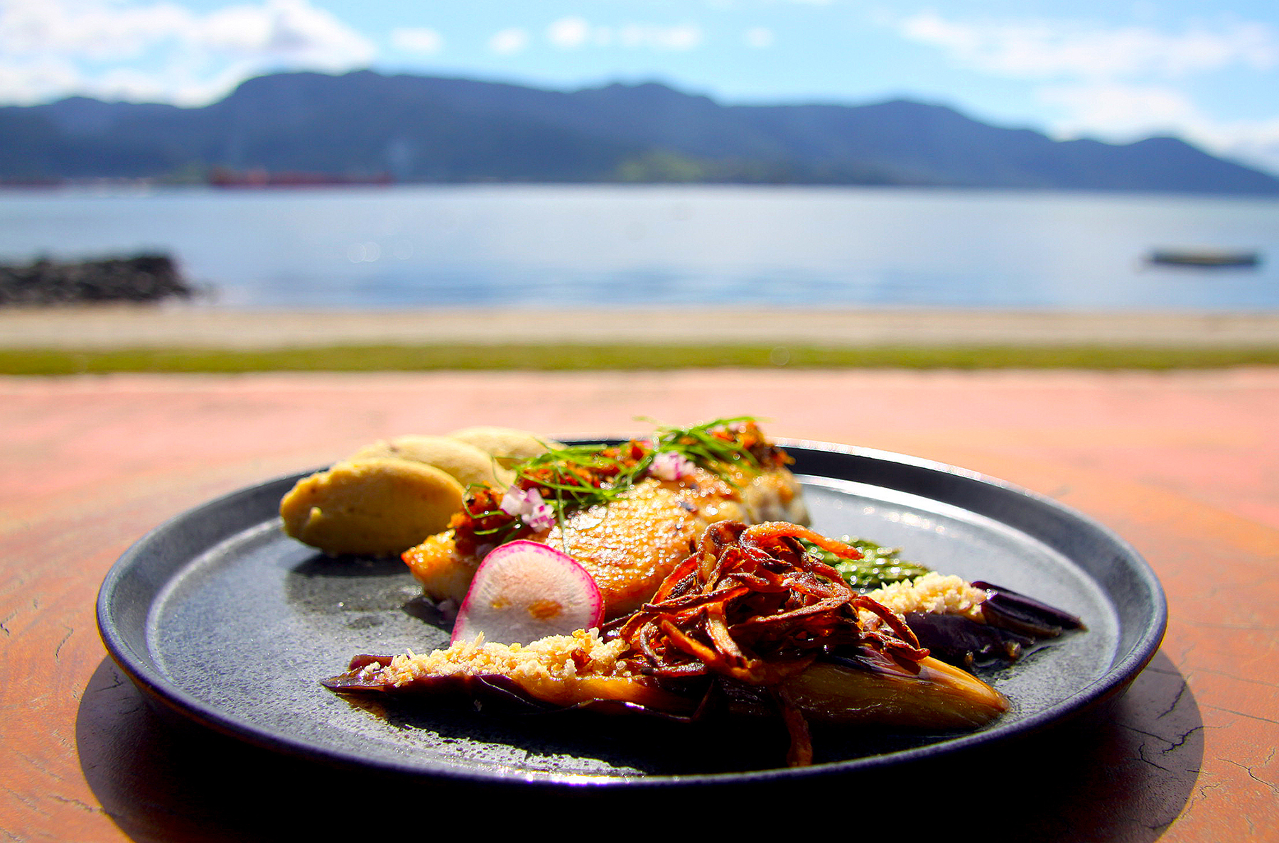 E por falar no Oceano Atlântico, o festival também proporcionará que o público possa degustar peixes com vista fantástica para o mar, na Praia do Perequê. O Chef do Nyáw Casual Eatery, Daniel Carhuaricra Quispe, preparou um prato que leva peixes frescos do dia para compor sua receita (R$ 75).