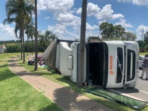 Um caminhão que levava 25 toneladas de ração tombou nesta sexta-feira (28) na rotatória que leva ao Swiss Park, em Campinas. O acidente ocorreu na Avenida Dermival Bernardes Siqueira, próximo ao cruzamento com a Avenida Antônio Artioli, sentido Centro. Não houve vítimas.