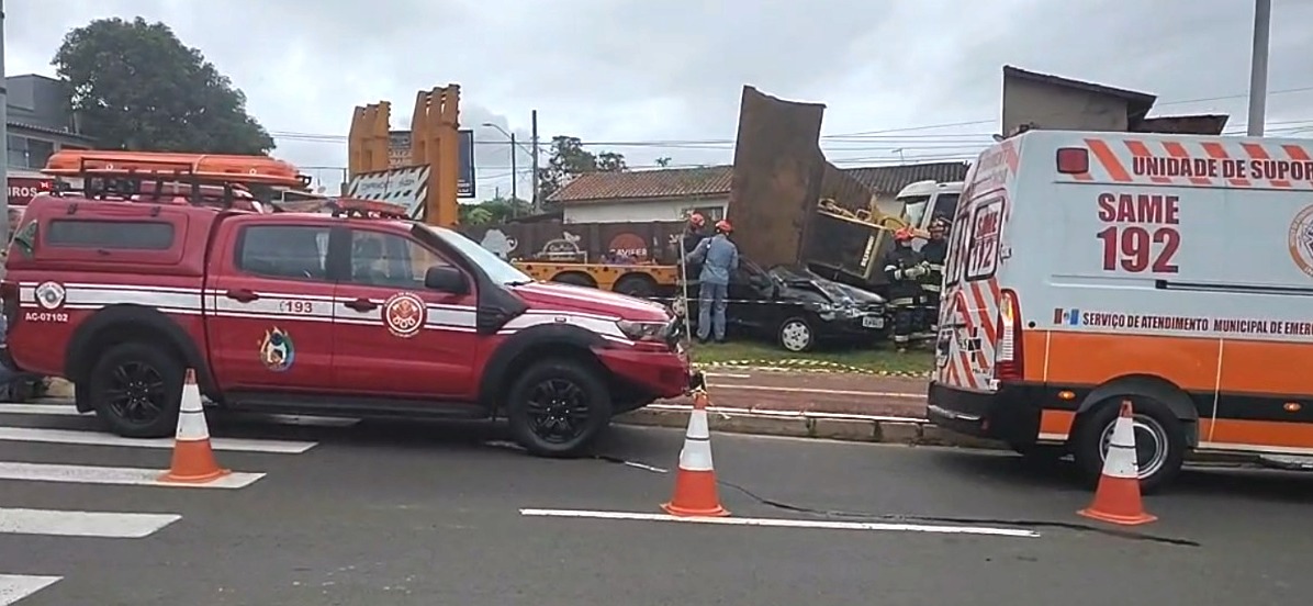O caminhão pertence ao Serviço Autônomo de Água e Esgoto (SAAE) do município e, segundo testemunhas, teria perdido a força em um trecho de subida da avenida. Durante a tentativa de controle, o veículo ficou atravessado na pista e a máquina transportada — uma retroescavadeira — se desprendeu da carroceria, tombando sobre carros que aguardavam no semáforo.