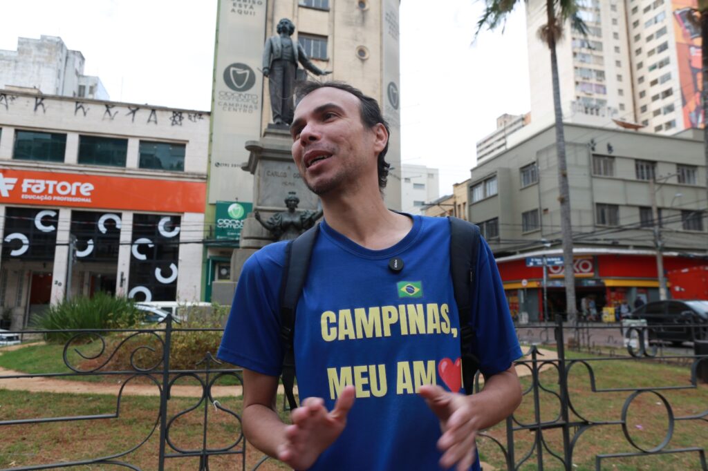 À frente da página Campinas, meu amor! — frase que também estampa a camiseta que costuma usar em suas caminhadas pelo Centro — desde 2012 ele transforma esquinas, fachadas, nomes de ruas e pequenos detalhes do cotidiano urbano em histórias que ganham vida nas redes sociais.