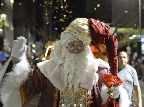 Papai Noel sairá de limusine do Largo do Rosário e estará acompanhado de personagens caracterizados. Ele vai para o seu trenó que estará em frente ao prédio dos Correios e de lá conduz o desfile, que terá na comissão de frente “O Lago dos Cines”, com bailarinos da Academia IAD Lina Penteado.