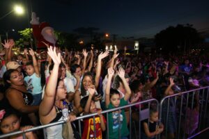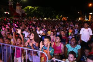 A Praça da Concórdia, no Parque Valença, ficou lotada na noite deste sábado (16/12), durante o espetáculo da Carreta Encantada. Um público de aproximadamente 10 mil pessoas emocionou-se com o musical natalino apresentado por duendes, soldadinhos de chumbo, dupla de palhaços, personagens da Disney, super heróis, princesas e príncipes. A principal atração ficou por conta do Papai Noel, que encantou as crianças.