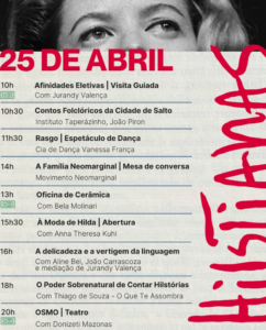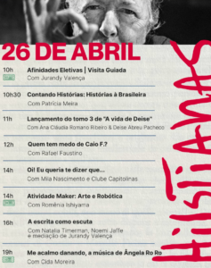 A programação, com entrada gratuita, contempla feira literária, espetáculos, exposição, mesas de conversa, atividades infantis, gastronomia, bar e experiências diversas.