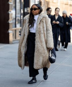 Os casacos de pele fake são o coração dessa tendência, oferecendo uma alternativa sustentável e cruelty-free às peles verdadeiras, sem perder o impacto visual e o toque de luxo.