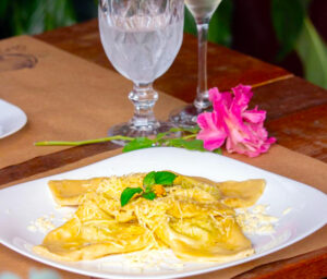 Um dos destaques do cardápio do Il Giramondo é o Tortelle, produzido com massa fresca artesanal, preparada com farinha premium especial, ovos caipira, espinafres orgânicos, queijo parmesão artesanal e noz moscada. A massa vem recheada com Ricotta artesanal, produzida na Fazenda Atalaia.
