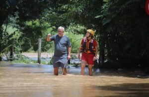 De acordo com a Defesa Civil de Jaguariúna, o nível do Rio Atibaia está 3,60 metros acima do normal.