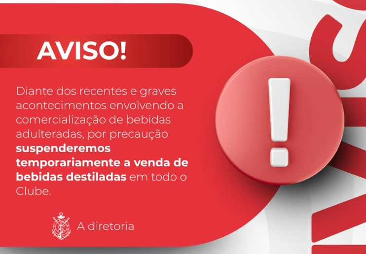 No Clube Regatas, a diretoria informou que a suspensão valerá para todo o clube, ressaltando que a decisão foi tomada “por precaução” diante dos “recentes e graves acontecimentos envolvendo a comercialização de bebidas adulteradas”.