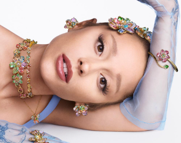 Brilho, romance e maximalismo. Inspirada no universo “Eternal Sunshine”, a collab traduziu o pop de Ariana em joias com cristais coloridos e muito coração.