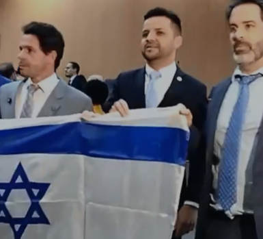 No embate desta quarta-feira (8), os vereadores Nelson Hossri, Marcelo Silva e Vini Oliveira chegaram a segurar uma bandeira de Israel para contrapor o protesto.