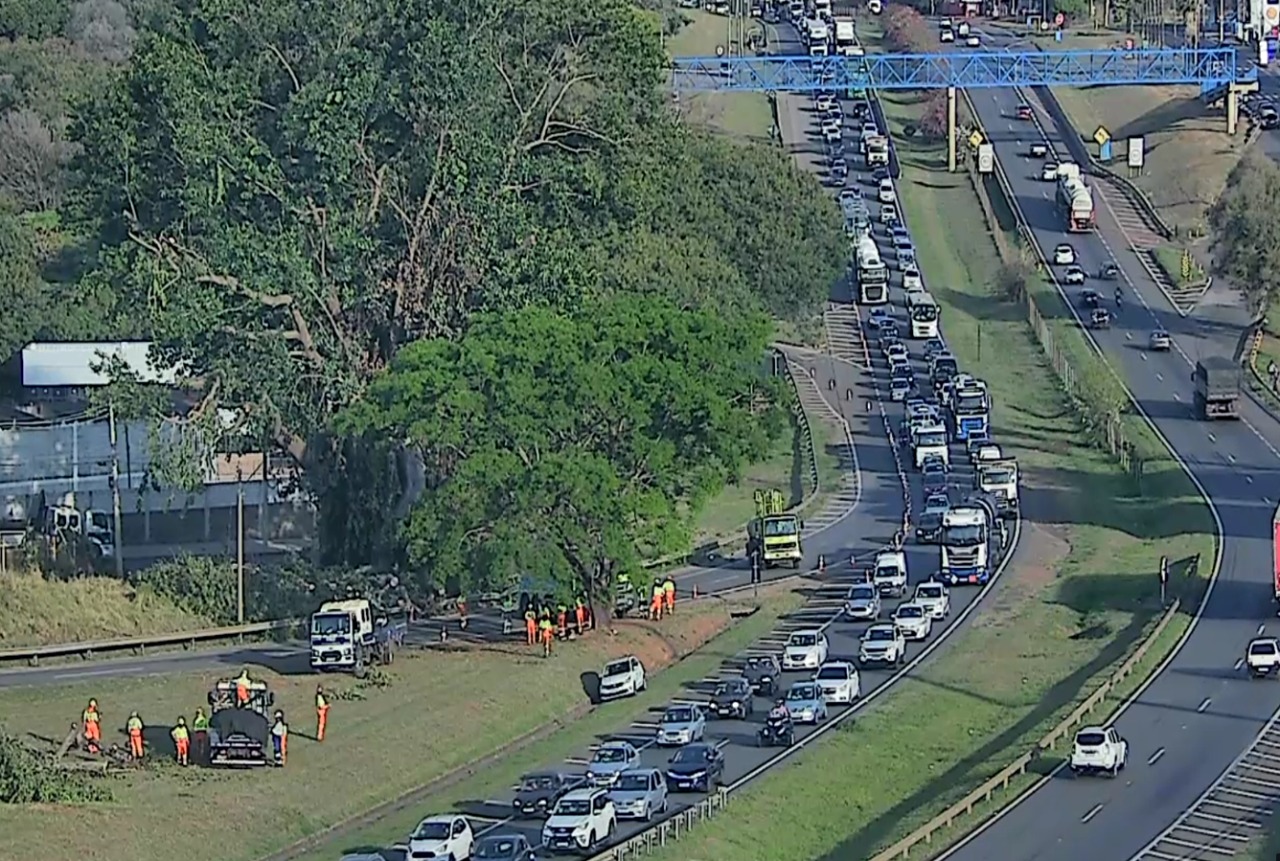 “Após verificação da equipe de Meio Ambiente da Rota das Bandeiras e de órgãos como a Defesa Civil, Corpo de Bombeiros e Secretaria do Meio Ambiente de Paulínia, foi constatada a necessidade de remoção completa da árvore, com cerca de 20 metros de altura. Além da equipe da Concessionária, a CPFL auxilia no corte, já que parte da árvore está sobre a fiação elétrica”, afirma a Rota das Bandeiras.