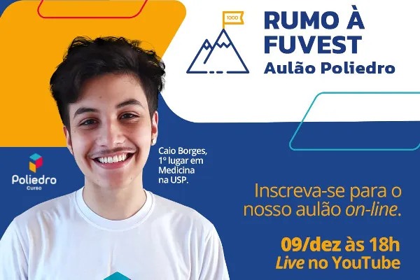 O Poliedro Curso realizará na noite desta quinta-feira (9), a partir das 18h, um aulão gratuito e on-line para estudantes que irão prestar o vestibular da Fuvest. A live tem como objetivo oferecer recomendações e fazer um direcionamento rápido, mas preciso, dos pontos importantes que podem aparecer na prova, considerando que a Fuvest é reconhecida por ser uma prova conteudista.