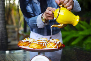 Bolo de mandioca com coco e calda de leite condensado. Foto: EDU HOHN/Divulgação