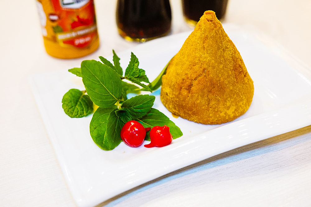 Coxinha de mandioca com recheio de pernil suíno e queijo provolone, da Nectaria Good Foods - Foto Ohohn Edu/Agência Marketal/Divulgação