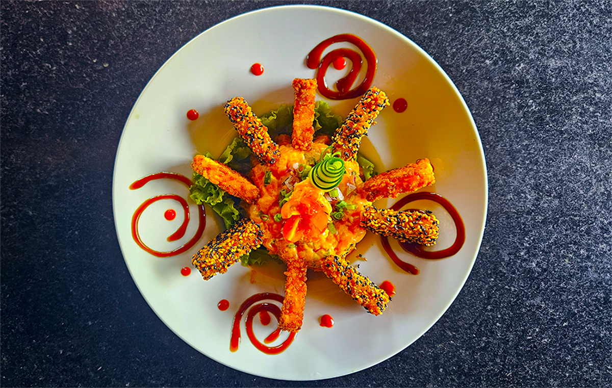 Para criar o prato, os Chefs utilizaram como ingredientes o gohan, peixe do dia (atum ou salmão ou robalo), green paste thay, iogurte, cebola roxa e cebolinha. O Crispy Thai Pitanga pode ser degustado com vista para o mar e, se desejar, com os pés na areia.
