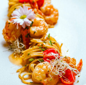 A iguaria é preparada com espaguete com camarão, tomates, cebola e vinho branco, além de broto de salsinha e azeite. Outro prato que poderá ser degustado pelo público durante o festival, apreciando as belas paisagens do mar que o hotel oferece.