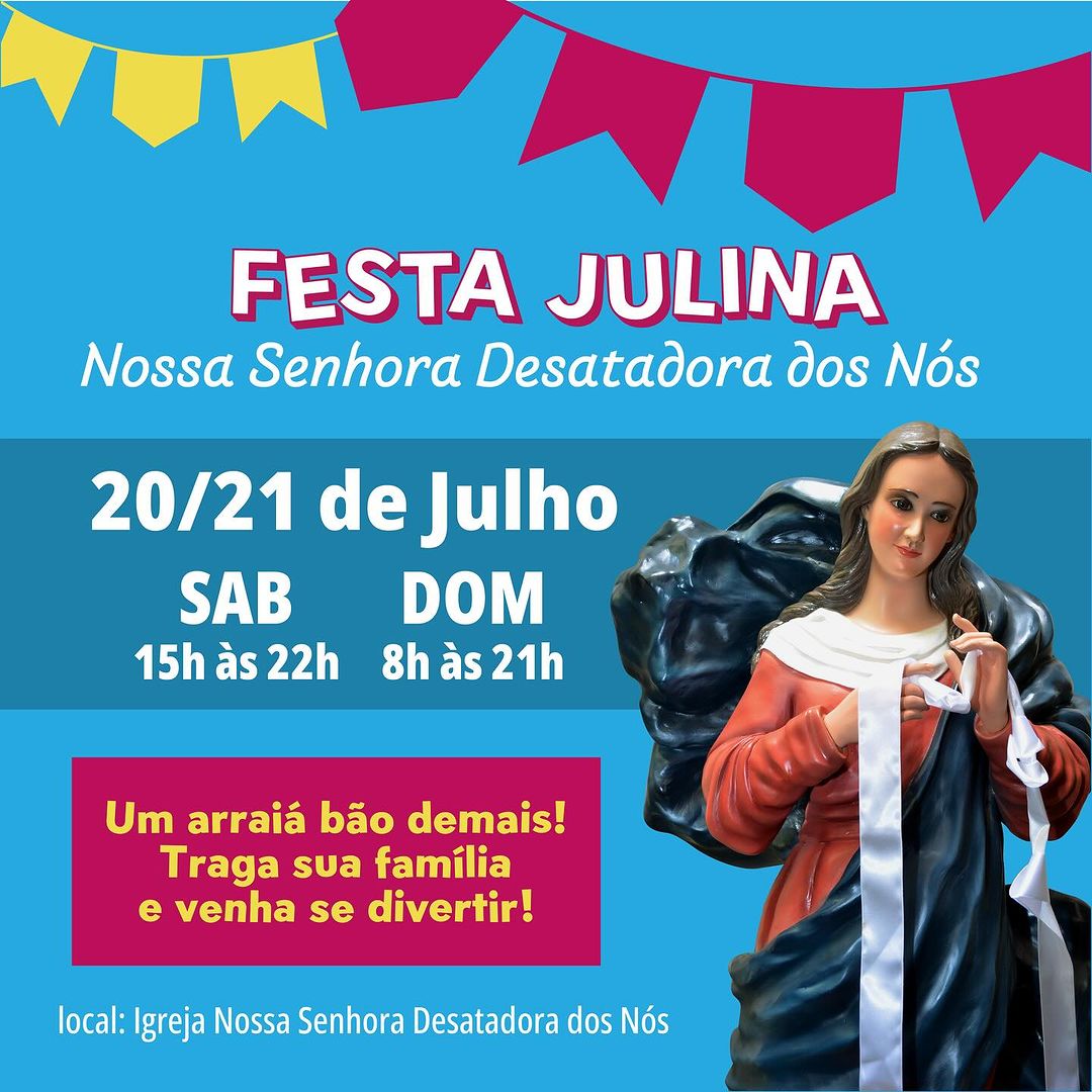 A tradicional Festa Julina da Igreja Nossa Senhora Desatadora dos Nós, em Campinas, acontece neste fim de semana, sábado (20) e domingo (21), no Jardim Santa Genebra, em Campinas.