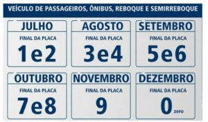 O Departamento Estadual de Trânsito de São Paulo (Detran.SP) divulgou um novo cronograma do licenciamento anual obrigatório a partir de 2022. O calendário foi estabelecido com base no final da placa dos veículos, porém com início a partir de julho. Por exemplo: donos de veículos com placas terminadas em 1 e 2 devem regularizar a documentação até o dia 31 de julho de 2022. O calendário vai de julho a dezembro – exceto para caminhões e tratores, que têm prazos entre outubro e dezembro.