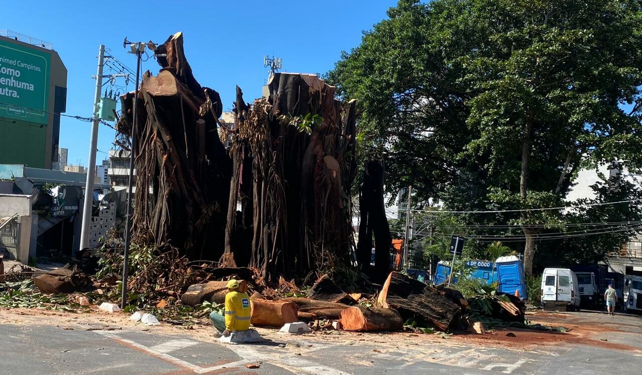 A Secretaria de Serviços Públicos confirmou, por meio de nota, que precisará de dois dias de trabalho para retirar a falsa-seringueira. Informou também que fará um boletim de ocorrência sobre o incêndio. “Após a retirada, a terra do local será preparada para receber uma peroba-rosa, árvore nativa e símbolo de Campinas”, acrescentou.