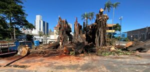 Equipes da Prefeitura de Campinas realizaram nesta sexta-feira (31) a extração da árvore incendiada na noite de quarta-feira (29), na praça Mauá, no Guanabara, em Campinas. A operação atraiu curiosos e provocou a interdição das ruas que circundam a praça. Dois dias depois do incêndio, ainda era possível notar pequenos focos de fogo e fumaça saindo do interior da “falsa-seringueira”, também conhecida como árvore-da-borracha, goma-elástica, borracheira ou ficus italiano.