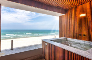 Um rooftop com vista para o mar, para a lagoa artificial e para a Mata Atlântica é um lugar perfeito para a celebração do pôr do sol, confraternizações, mini weddings e eventos. O hotel recebe também duas quadras de Beach Tennis, sendo uma na praia de Maresias e outra no interior do empreendimento, que possui areia especial que não aquece com o sol. No total, o empreendimento possui 85 diferenciais para que a experiência dos recém-casados seja completa.