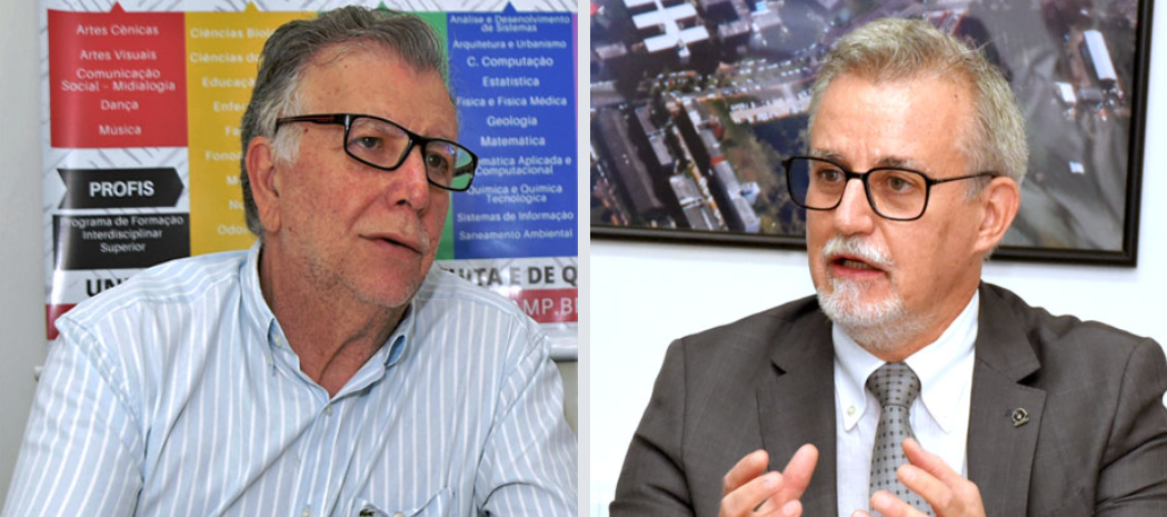 O pró-reitor de Graduação, Ivan Toro (esq.) e o reitor da Unicamp, Antonio Meirelles. Fotos: Antoninho Perri e Antonio Scarpinetti/Unicamp