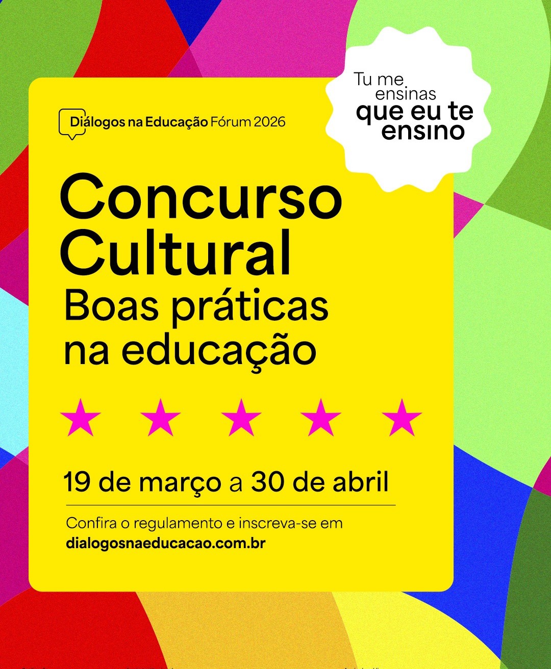 Educadores da Educação Infantil e do Ensino Fundamental I e II de escolas da rede pública têm até o próximo dia 30 para se inscreverem no Concurso Cultural “Boas Práticas na Educação”, que tem como tema, neste ano, “Tu me ensinas que eu te ensino”. As inscrições gratuitas devem ser realizadas pelo site www.dialogosnaeducacao.com.br .