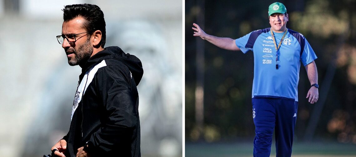 Alberto Valentim está desde o início da temporada no comando técnico da Ponte, enquanto Matheus Costa, que fará sua estreia, é o terceiro treinador bugrino em 2025 – Fotos: Marcos Ribolli/PontePress e Raphael Silvestre/Guarani FC