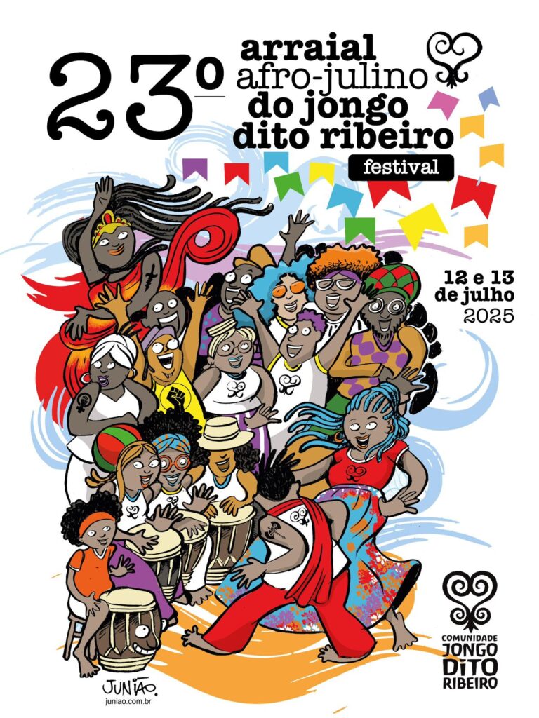 Cartaz com os traços do cartunista Junião anuncia a festa afro-julina – Foto: Reprodução