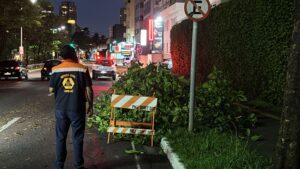 Também é indicado não se abrigar sob árvores, postes ou estruturas metálicas frágeis, evitar estacionar veículos em áreas arborizadas e recolher objetos soltos em varandas e quintais, como vasos e móveis, que podem ser levados pelo vento. Durante tempestades com raios, deve-se evitar locais abertos, estruturas metálicas e contato com água. Em caso de queda de fio de energia sobre um veículo, a orientação é permanecer dentro do carro e acionar imediatamente o Corpo de Bombeiros pelo telefone 193.