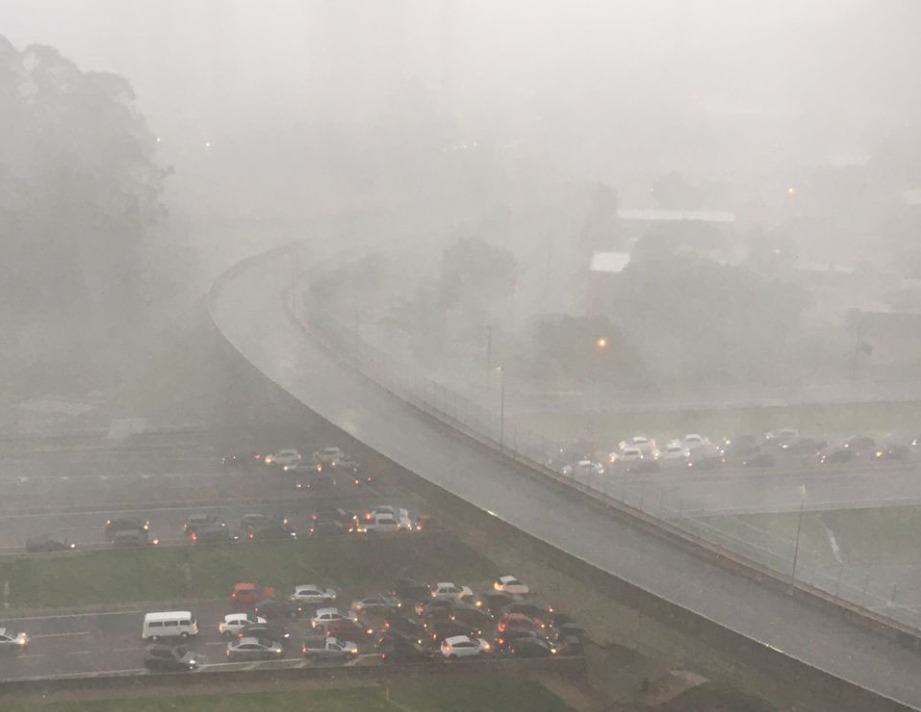 Motoristas buscam abrigo sob viaduto da Rodovia Anhanguera durante tempestade de granizo em Jundiaí. Foto: Reprodução/Jornal da Região