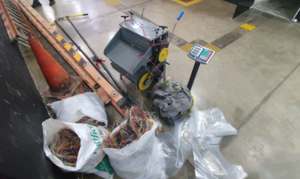 Ao chegar ao endereço, os agentes localizaram o veículo estacionado em frente à propriedade. O portão do imóvel estava entreaberto, e foi possível visualizar grande quantidade de fios já descascados, além de ferramentas e materiais utilizados para o preparo e comercialização irregular do cobre.