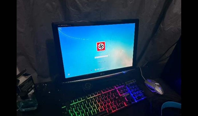 Tela do computador do suspeito mostra a suástica nazista - Fotos: Polícia Civil/Divulgação