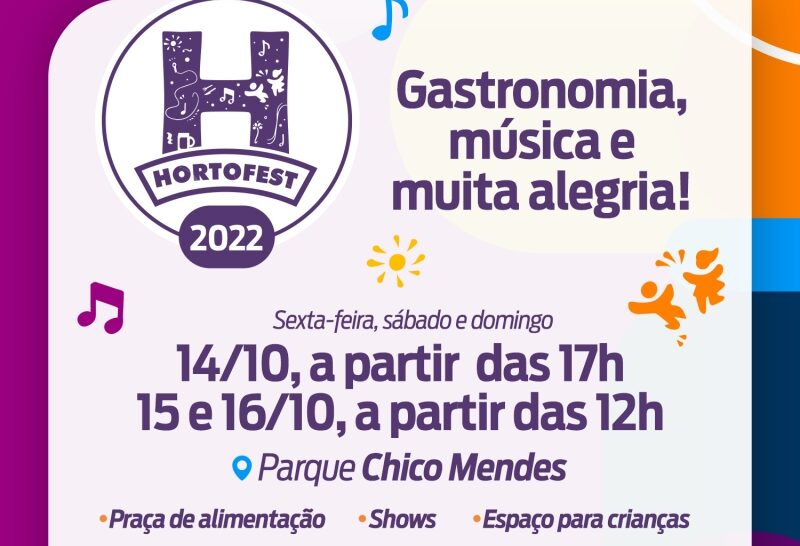 A Prefeitura de Hortolândia organiza o “HortoFest 2022”, nesta sexta-feira, sábado e domingo (14, 15 e 16), no Parque Socioambiental Chico Mendes, localizado entre as avenidas Olivio Franceschini e Santana. O evento, com a parceria da organização Central Rock, terá shows musicais, gastronomia e área para crianças em meio ao cenário cercado de plantas e árvores do parque. A programação começará às 17h, na sexta-feira, e às 12h, no sábado e domingo.