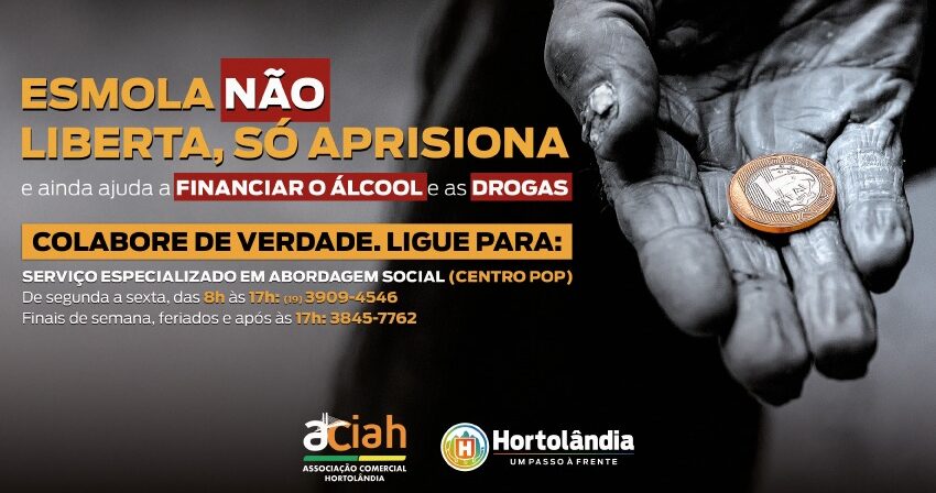 Hortolândia promove, a partir desta semana, uma campanha de conscientização sobre a doação de esmolas a pessoas em situação de rua do município. O objetivo da Prefeitura é sensibilizar a população a refletir sobre o tema, de modo a melhor atender este segmento e a fortalecer as políticas públicas existentes nesta área.