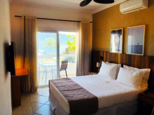 O hotel possui 60 apartamentos, alguns deles de frente para o mar, distribuídos em cinco categorias. Cada uma oferece muito conforto, com ar climatizado, frigobar, estação de trabalho com internet wi-fi, decoração, TV com canais de stremming, cofre e ventilador de texto.