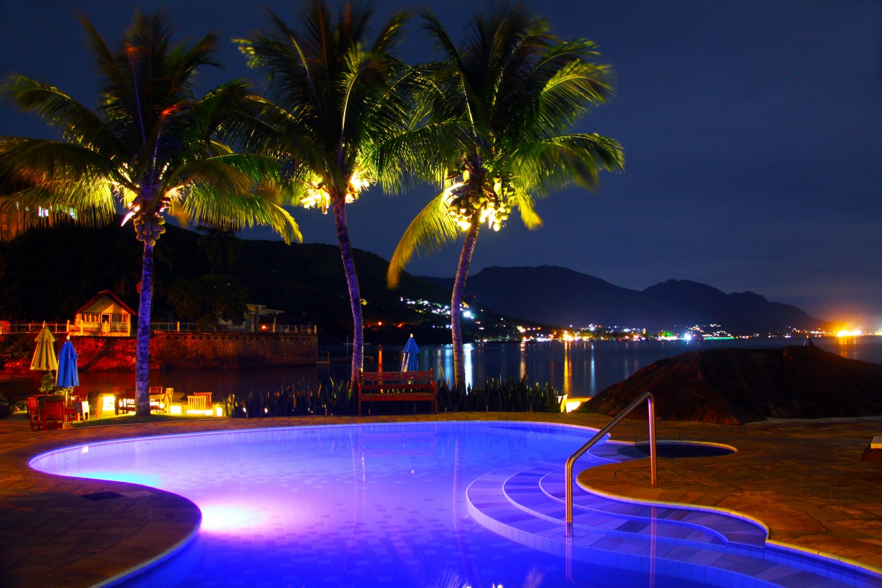 Depois de um dia inteiro de passeios e compras em Ilhabela, os hóspedes podem relaxar nas duas piscinas do hotel. Uma delas, localizada dentro da propriedade principal, é formada por águas naturais provenientes de uma cachoeira existente nas proximidades, que proporciona um banho refrescante, relaxante e revigorante.