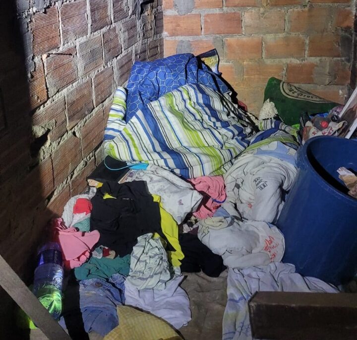 De acordo com a Guarda Municipal, que atendeu a ocorrência, ao chegar ao endereço, equipes encontraram populares em frente ao imóvel. Dentro da residência, havia apenas um cômodo, com telhado improvisado por vizinhos, sem água, energia elétrica, alimentos e em grande desordem.