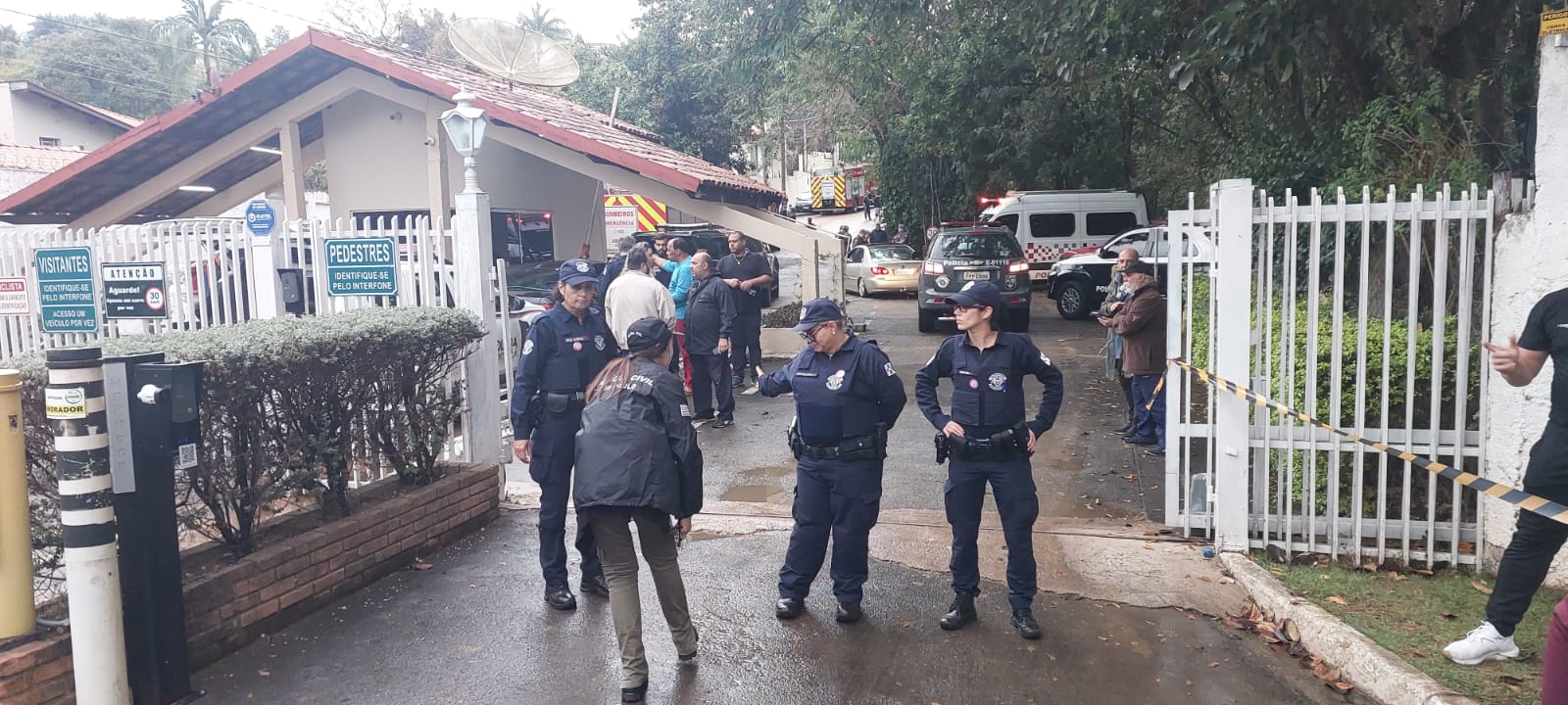 Jornalistas e moradores de Vinhedo na porta do condomínio