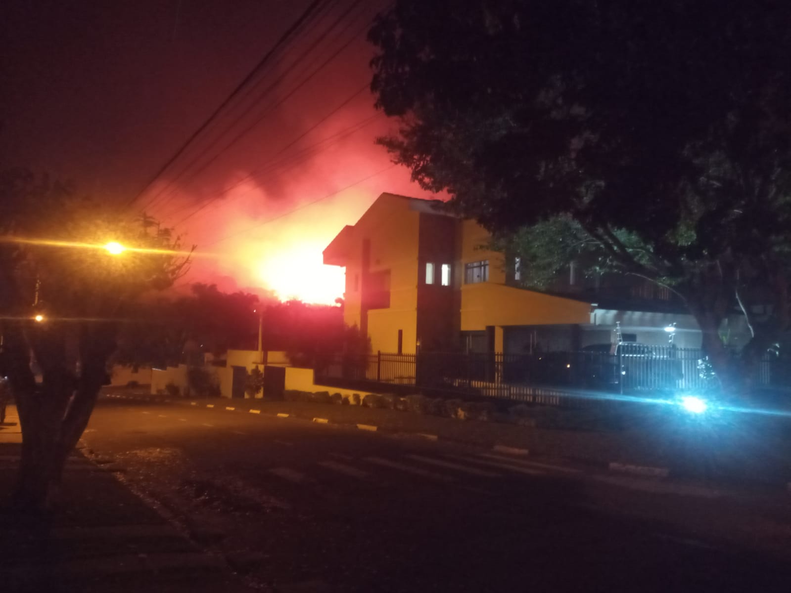 Fogaréu avermelhado é observado no fundo das casas localizadas na Avenida Lauro de Carvalho, no bairro Jardim Novo Jaguari Foto: Marcelo Pereira/Hora Campinas