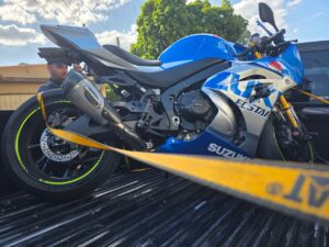 Os policiais encontraram a moto utilizada pelo motociclista na garagem. Durante as buscas na casa, também foi localizada uma granada.
